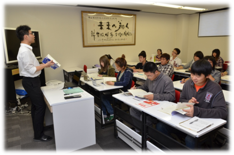 根据使用汉字的学生及非使用汉字的学生,分别使用相应合适的教材给予教导。然后分析每年举行4次的定期考试的结果,再依据日语能力实施编制教材。从初级程度到[日语留学试验]合格为目标,或者根据每位同学希望升学的学校,给予个别辅导教课全心全意為学生服务。